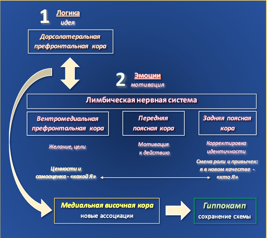 Отвечает за формирование желаний и целей (см. изображение справа, размещённое выше).